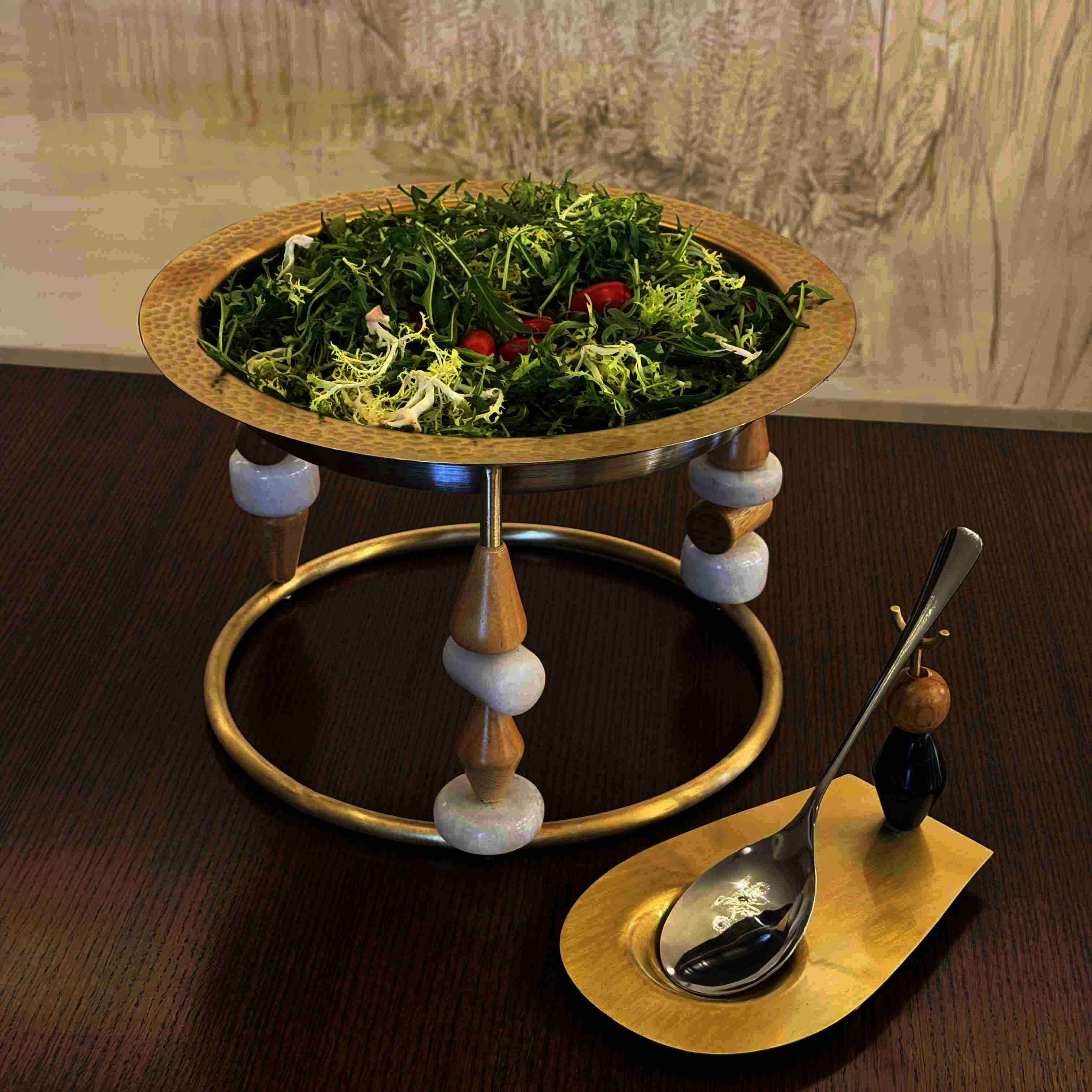 Multiuse platter with brass base, marble & wood & stainless steel insert