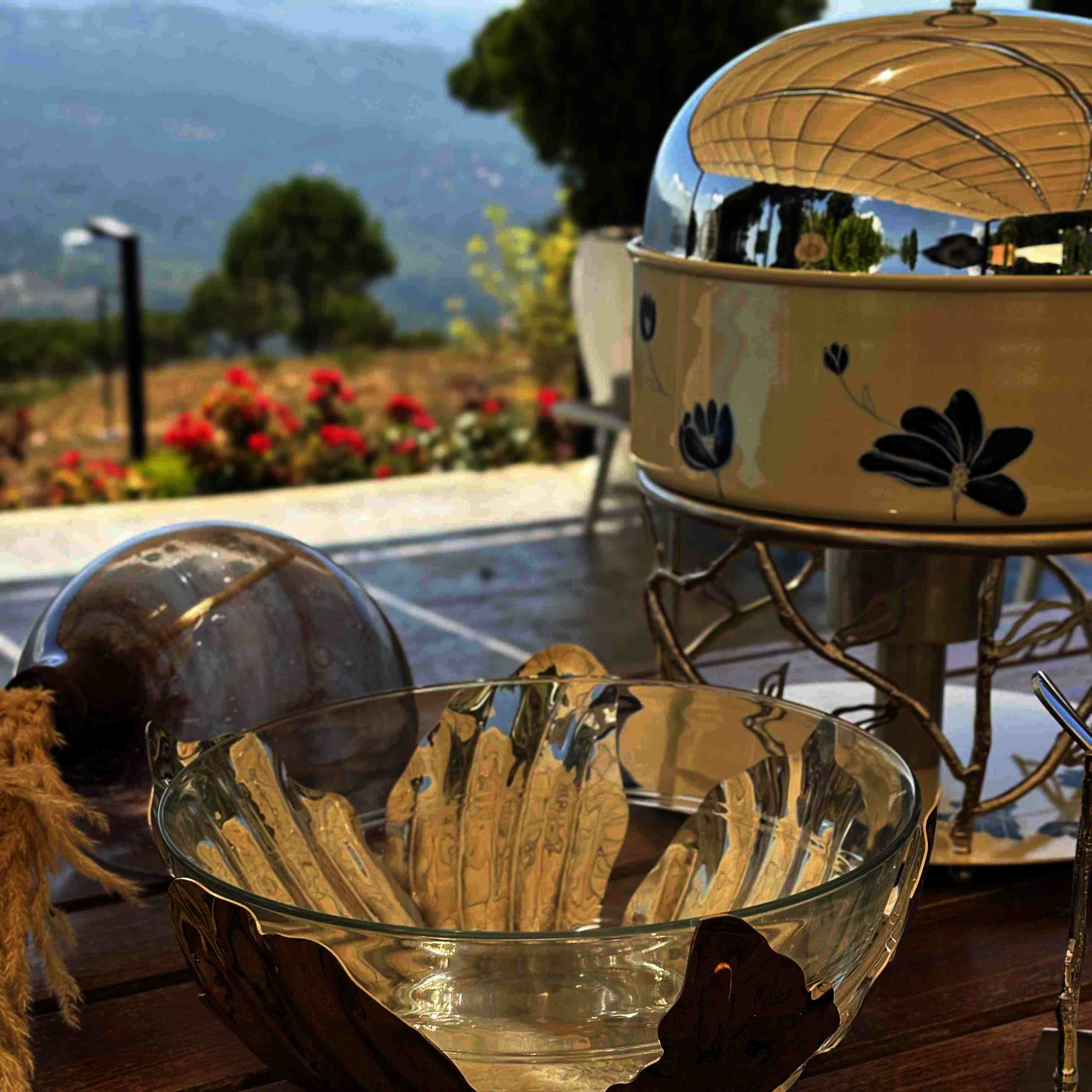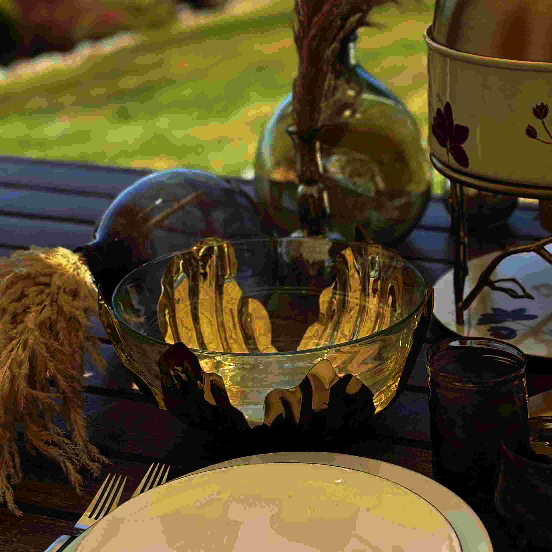 Flower Brass Base Salad Bowl with glass insert